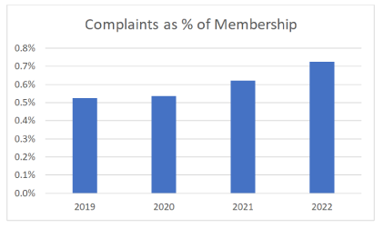 The number of public complaints has increased over the years due primarily to the increase in registrants.