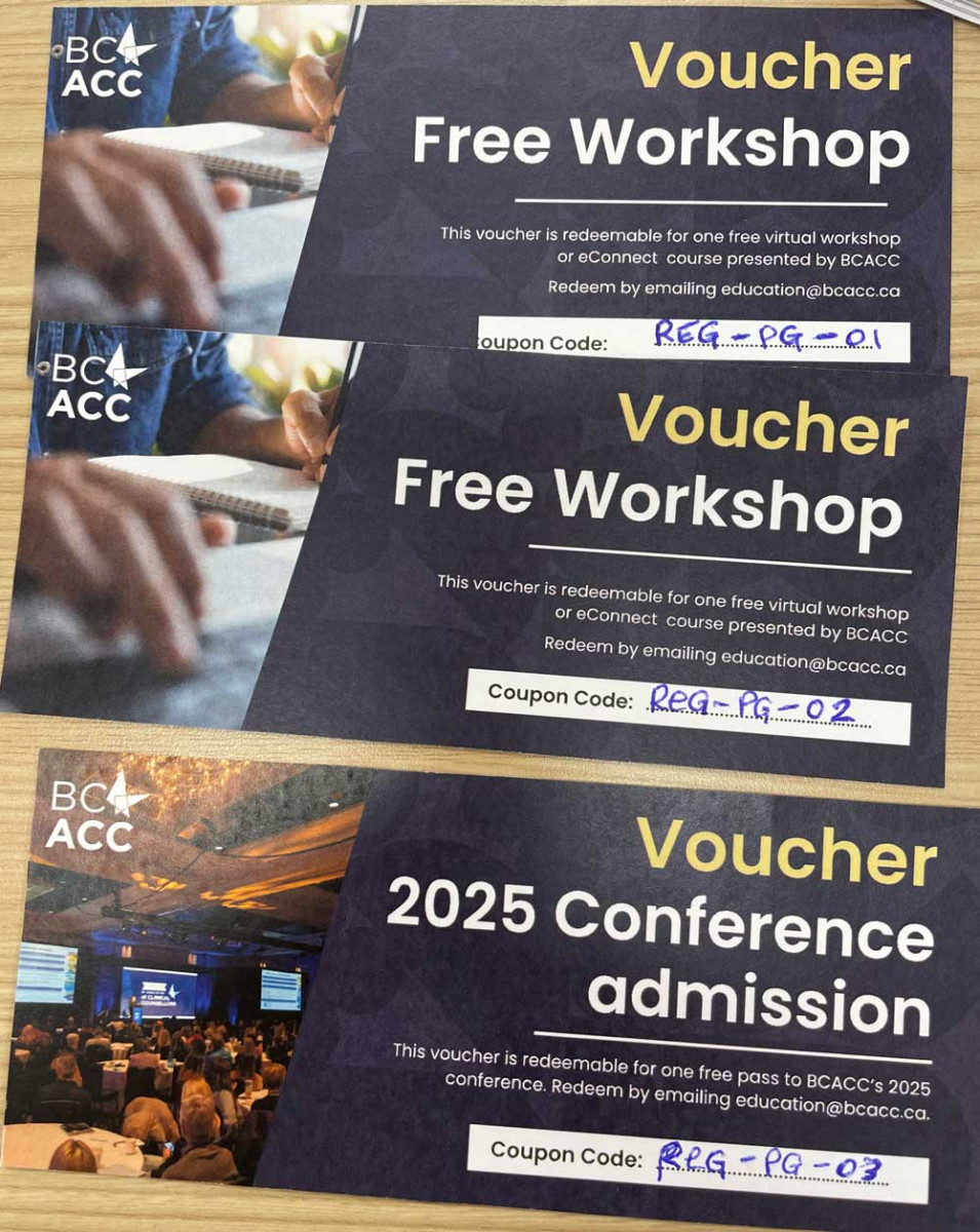 These events offered throughout the province underscore BCACCs commitment to a strong community and professional excellence.